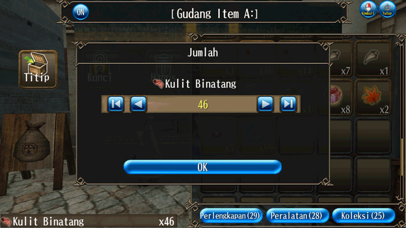 Jumlah item yang ingin "dititip" atau "diambil" dari gudang kini dapat ditentukan.